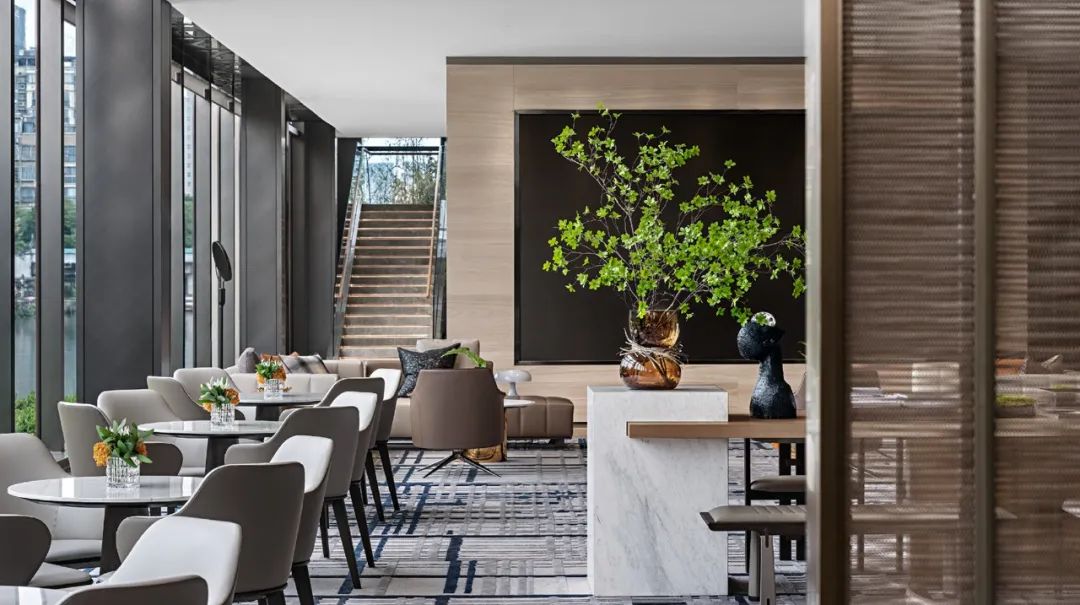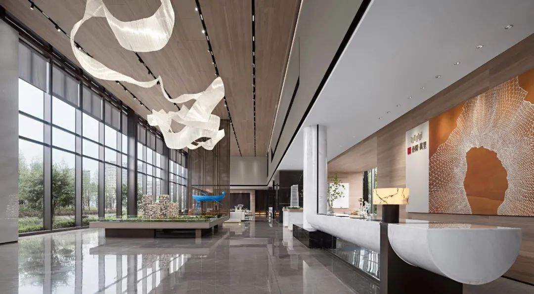 “汩汩而流的江河、蓊郁清凉的湿地生态、回响声声的打渔歌……温州的清雅与悠哉成为我们设计时想要营造的空间格调。基于对自然的解读与融合,我们将水的意象融入当代语言中,营造都会与自然交融相生的生活意境,抒叙场域润泽身心、静谧怡人的美学。”众睦设计创始人潘贤挺先生如此诠释。